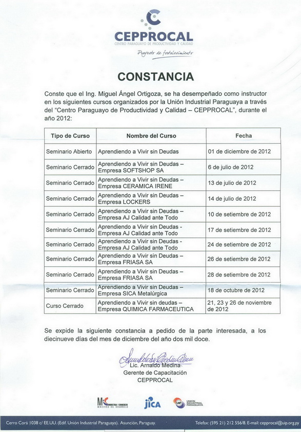 Cursos dictados con la UIP» «CEPPROCAL Año 2012